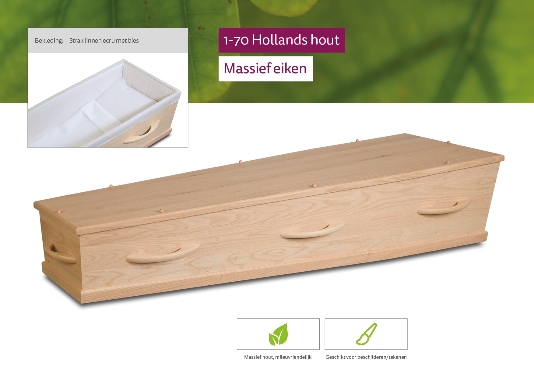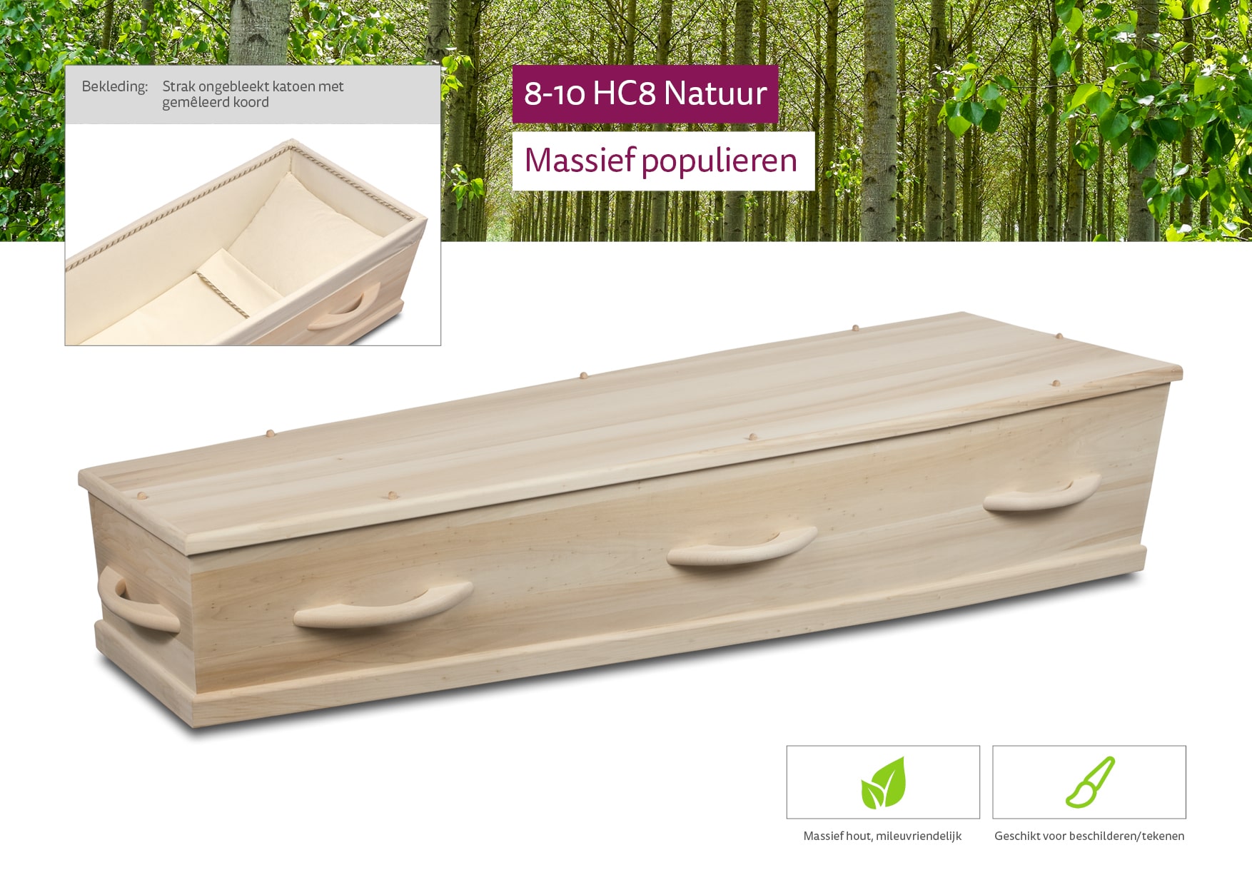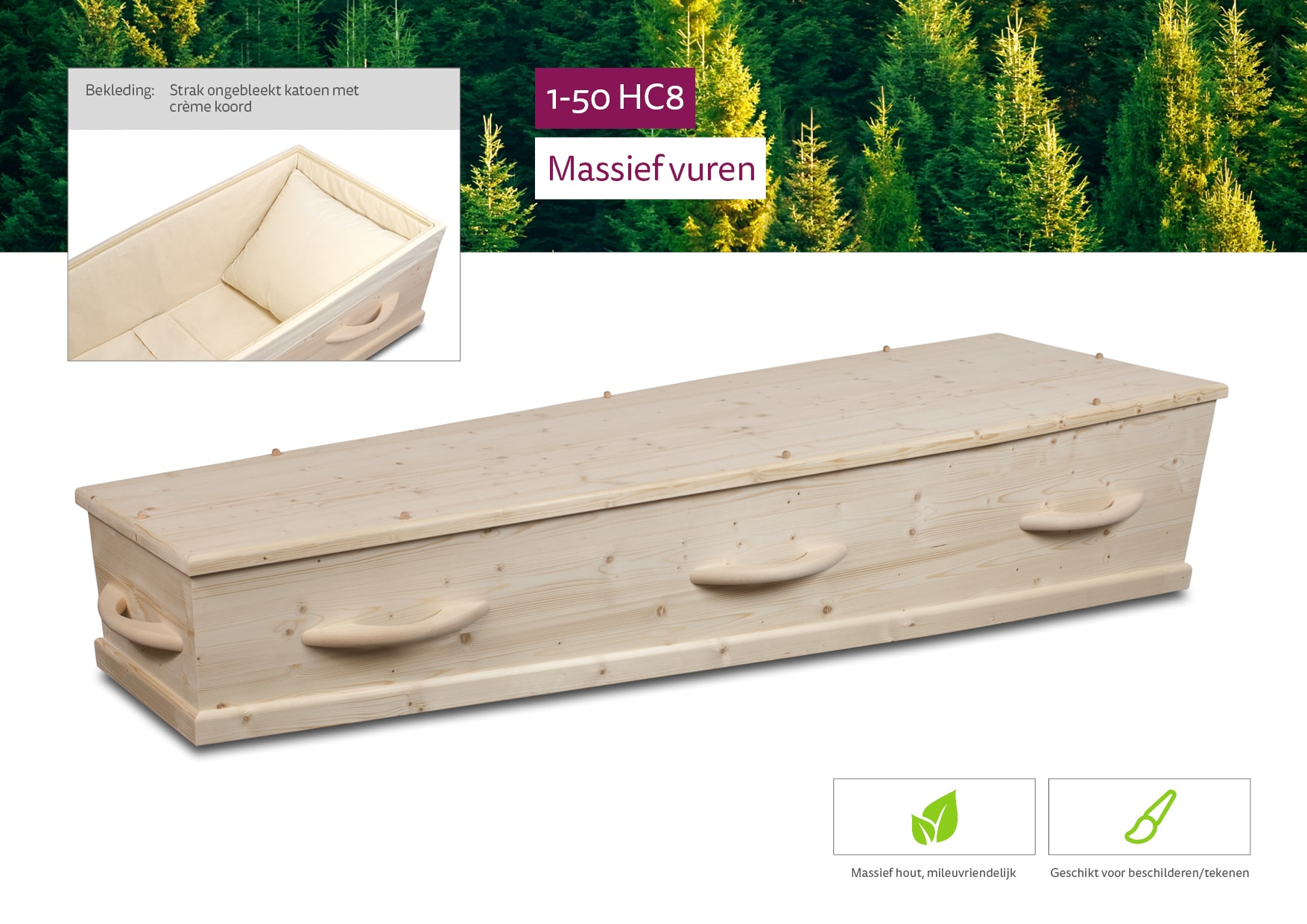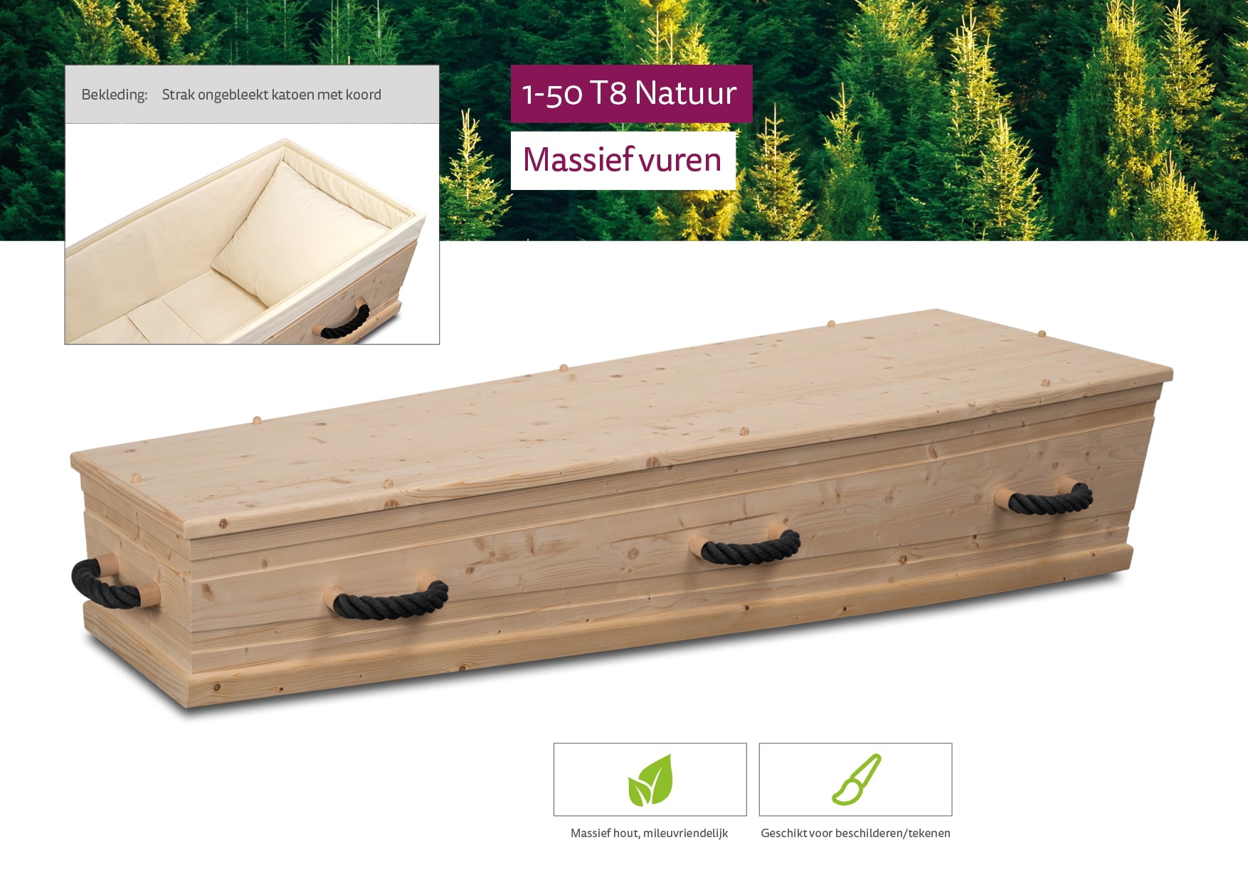 Wij bieden een brede collectie uitvaartkisten: van eenvoudig en ingetogen tot duurzaam of exclusief. Onze basis bestaat uit EcoBoard – geperst populierenhout met 85% minder schadelijke stoffen dan spaanplaat – licht van gewicht én vriendelijk voor het milieu.